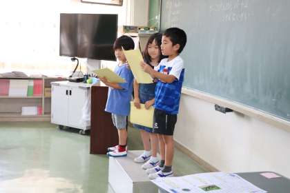 生活科「学校探検」のまとめです。自分たちでもっともっと調べたことをクイズ形式にして、「さてこの部屋はどこでしょう」とか「副校長先生はなぜ副校長先生になったのでしょうか。」など出題し、楽しみながら学習していました。