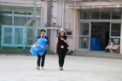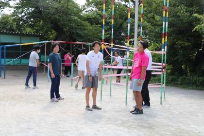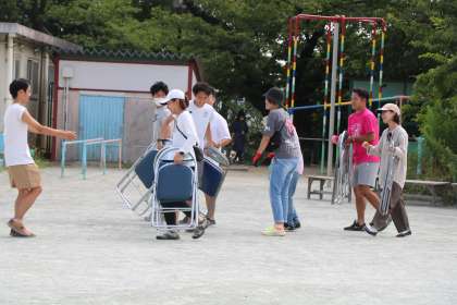 先生たち・・・カメラを向けるとわざとこんな顔をしますが、本当は楽しく準備を手伝っています。早くも心は夏祭りです。