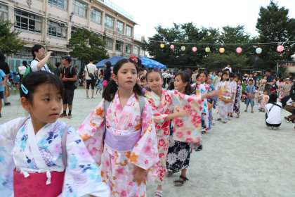 今年は、砧っ子カレー配布時間を学年ごとにずらしました。カレーを食べる子、盆踊りを楽しむ子、懐かしい先輩や同級生との再会を楽しむ子、夕方の風に吹かれながらのんびり楽しみました。