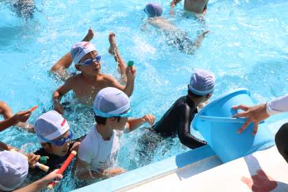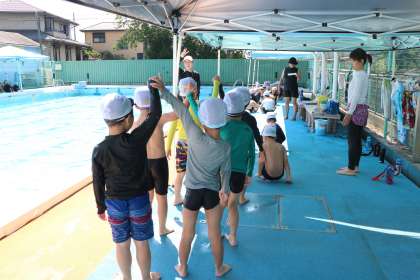 プールから上がったらすぐにバディの友達を探し確認します。人数報告もとっても上手になりました。