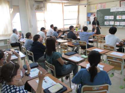 講師の先生をお招きして、教員向けの外国語の授業の研修を行いました。先生役、児童役に分かれて模擬授業も行いました。とても実践的な研修となりました。2学期からの外国語の授業に早速生かしていけそうです。