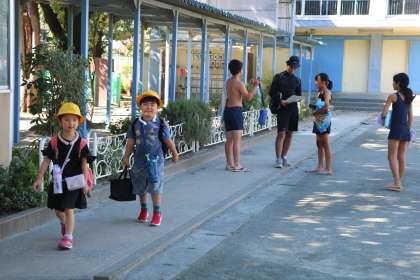 今日も朝からいい天気です。学童の子たちも元気そうです。今日、前半は5年生、検定もあります。