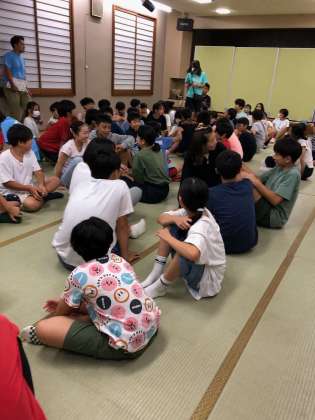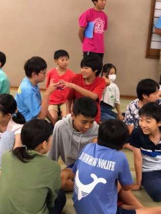 雨でキャンプファイヤーができなかったので室内レクを楽しみました。