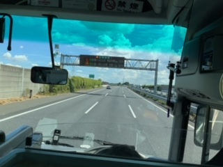 羽生パーキングでトイレ休憩をすませ、バスは出発しました。途中事故渋滞の表示が出ています。また近くなったら、渋谷を通過する頃すぐーるでお知らせします。
