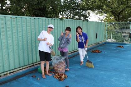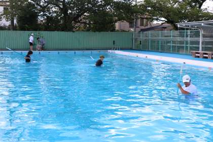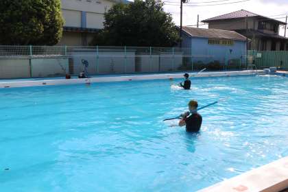 先生たちも、朝からプールの準備を念入りに行いました。きれいなプールで待っています!