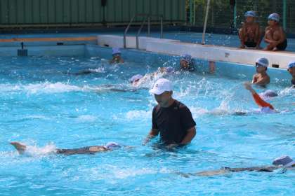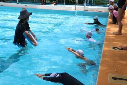 前半の3年生の様子です。水慣れの後、検定を実施しました。