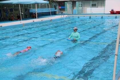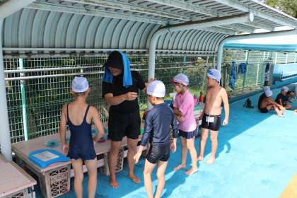 前半の3年生の検定の様子です。前回の検定日が中止だったので、その分もがんばって泳いでいました。新しい級のバッチをもらってうれしそうにしていました。