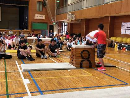 午後は体育実技研修でした。6ブロック8校の先生たち150人あまりが明正小学校体育館に集まり、跳び箱運動の実技について学びました。ここ数年はZOOMや紙上研修でしたが、4年ぶりに一堂に集まって研修しました。先生どうしとても仲が良く、久しぶりの再会を喜ぶ声があちらこちらから聞こえました。活気のある研修会スタートです。