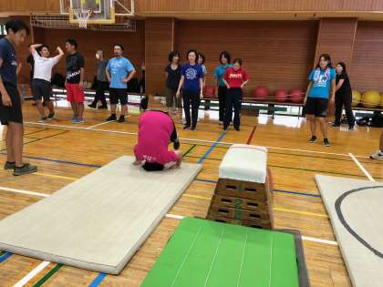 指導上のコツを全員で確認してから、実際に技のポイントなど体験することからスタートです。