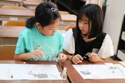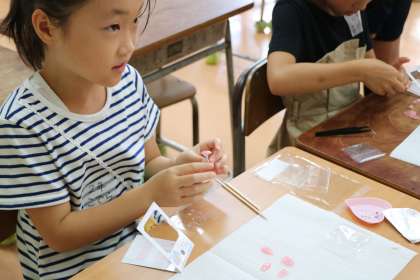 「オリジナルネイルチップ作り」の様子です。可愛い爪アートの材料にワクワクする子どもたちです、