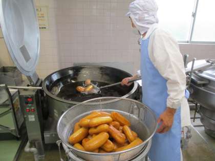 今日の給食はこどもたちが好きなきなこ揚げパンです。昨日から「明日の揚げパンが楽しみ!」と話しているこどもたちが何人もいました。