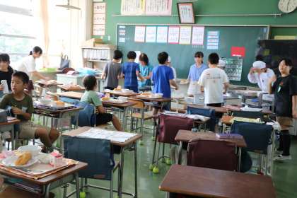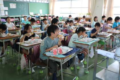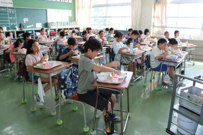 プールの後、給食の準備もとても協力的で、素早く食べ始めることができました。4年生がんばっています。
