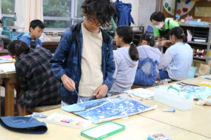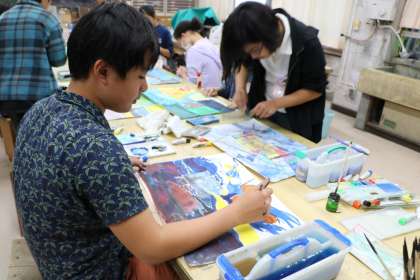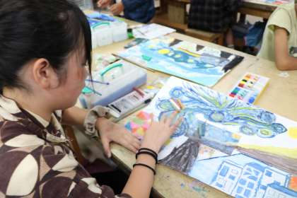 6年生図工「名画とコラボ」の様子です。夏前から取り掛かり、いよいよ完成の大作です。あれ?ここも名画の一部?と思いきや、そこは本人が描いた部分だったり、名画から発展して違う世界観に変化させて表現したり、鑑賞するのが楽しい作品ばかりです。額装して飾りたくなります!