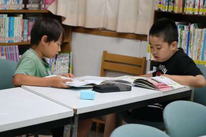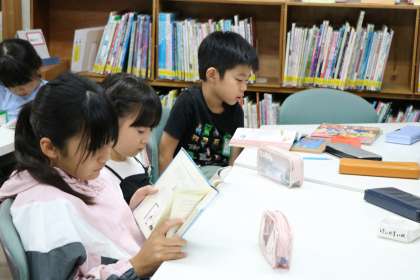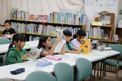 4年生図書の様子です。外の暴風雨とは対照的に、静かに集中して本を読んでいます。