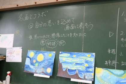 6年生図工・「名画とコラボ」の様子です。力作ぞろい、どれもすてきな作品ばかりです。先生や友達のアドバイスを聞き、さらにより良い作品にしようと生かせるところが砧っ子の素直な良いところです。