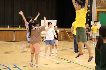 4年生の様子です。文化庁から依頼を受けた劇団員の方々がげすとてぃーちゃーです。4年生は昨年度に続き2年目なので、さらにバージョンアップした内容で3日間過ごします。色々なアクティビティーを通して適切なコミュニケーション能力を高めてほしいです。
