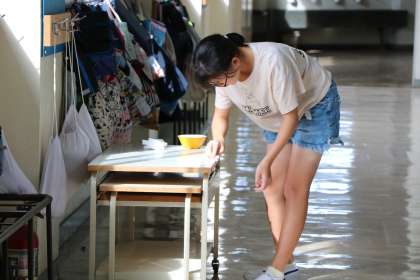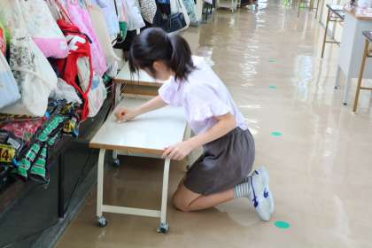 さらに保健・給食委員会さんたちは、各教室にある配膳台をきれいに磨く、前期最後の仕事を頑張りました。