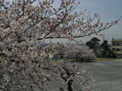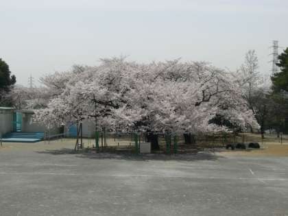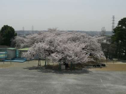 子どもたちは、満開の百年桜の下で元気に遊んでいました。