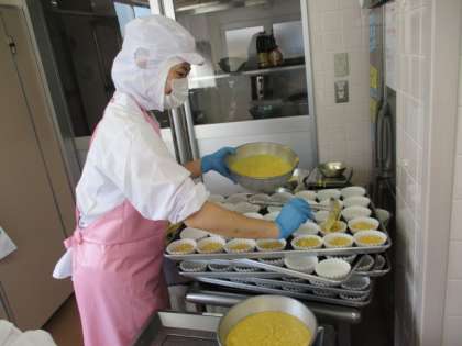 今日のスパゲッティに入っているなすは世田谷区内の畑で収穫されたばかりの新鮮でおいしい「世田谷育ち」のなすです。世田谷区内では、多くの農産物が作られています。四季折々に、新鮮で栄養価の高い野菜を日々の給食に取り入れています。