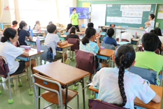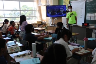 外国語の学習の様子です。家で、何時に宿題をやりますか?何時に夕食を食べますか?何時に布団に入りますか?など時刻の言い方について学習しています。