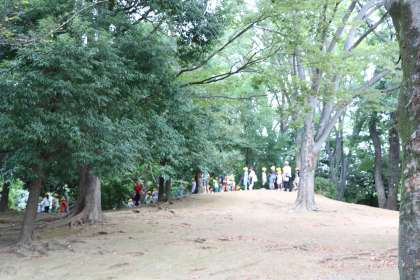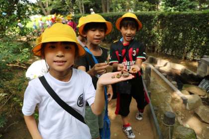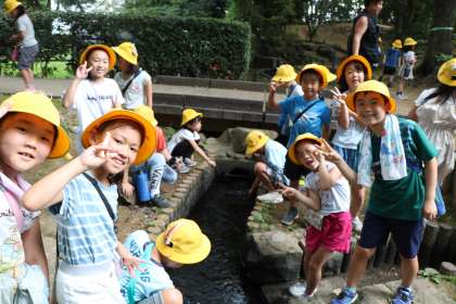 2年生が町探検に出かけました。今日は自太夫堀公園です。