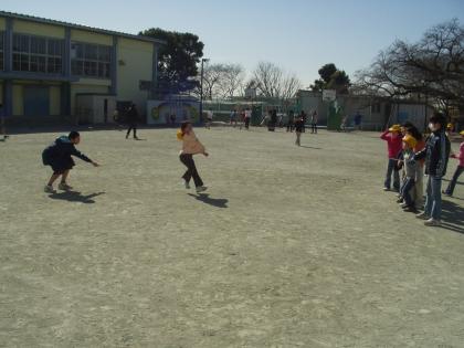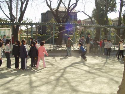 この1年、一生懸命取り組んできた「長縄」。この技術や気持ちを下級生に伝えようと中休みを利用して、6年生が各学級へ長縄の指導にあたっています。「長縄」の伝統を砧に!がんばれ、6年生!!