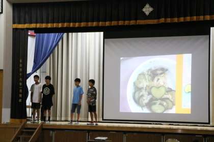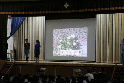 「砧小学校の校庭にはこんなにいろいろな植物があるんだ」と、「畑で育てた野菜は給食の一部にも活用されているんだ」と、真剣に発表を聞いていました。