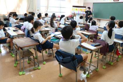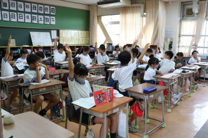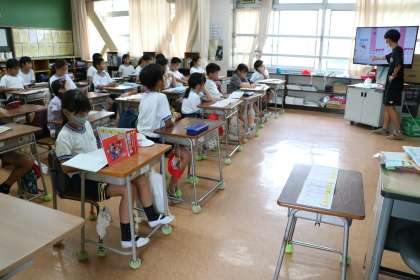 3年生国語の様子です。新出漢字を学習しています。筆順を確認したり、熟語を出し合ったり、知っていることを言いたくて言いたくて仕方ないという意欲的な子供たちです。