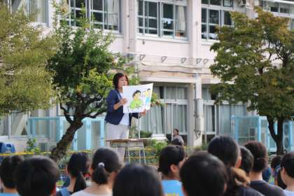 全校朝会では、「カフェオレから学ぶ、よい勉強の姿勢」の話をしました。どのような話だったかぜひお子さんに聞いてください。