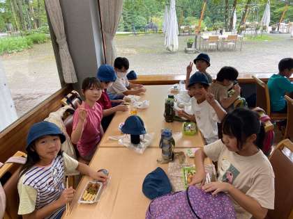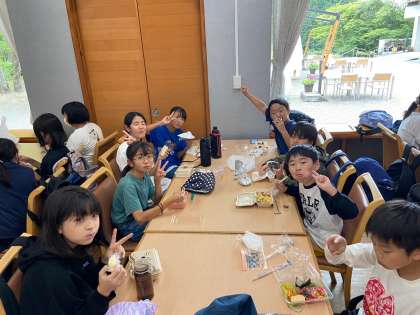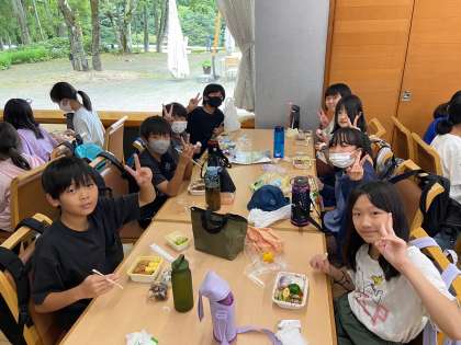 お弁当を食べているところは食堂です。行動班ごとに仲良く食べています。