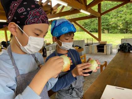 いよいよ夕食のカレー作りです。かまど係とカレールー係に分かれてスタートです。