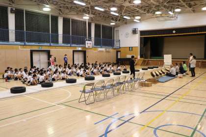 3年生総合・石井戸囃子の練習の様子です。今日も保存会の皆様がいらしてくださいました。石井戸囃子は世田谷郷土芸能の一つで今年60周年を迎えました。しかしその生誕には諸説あり、地域に脈々と続いていたという頃も合わせると100年以上の歴史があるお囃子だといわれています。