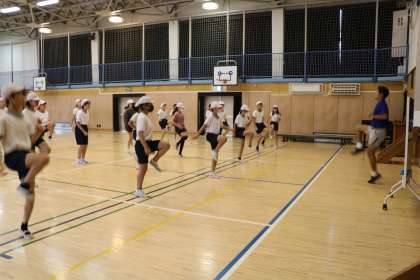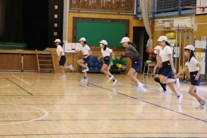 今日から6年生の連合運動会に向けた朝練習が始まりました。今日はあいにくの雨だったので、体育館で練習です。本番までの約2週間、種目によって朝練習の日が決まっています。限られた練習時間、精一杯頑張ってほしいです。