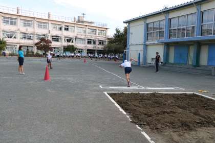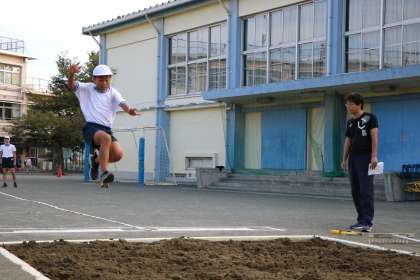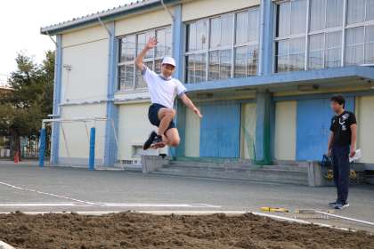 選抜リレー選手も兼ねている走り幅跳び選手も、一生懸命練習しています。