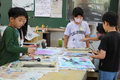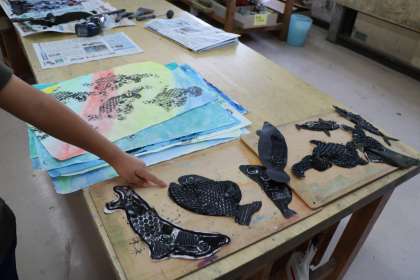 「デコボコさん大集合」という作品なだけに、一つ一つの版がとても工夫されています。摺り終わった版にも愛着があるようです。