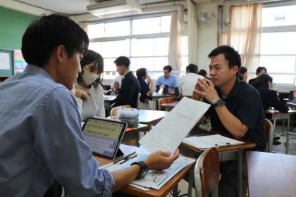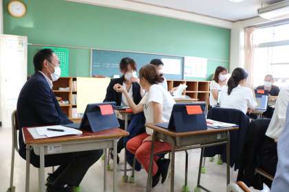 授業の後は、先生方と授業について振り返り、講師の先生から指導講評をいただきました。3年生の子たちが、一生懸命伝統をつなげよう、聞いている人を楽しませて自分たちも楽しもう・・・と、主体的に石井戸囃子に取り組んでいる様子を講師の先生にもたくさんほめていただきました。
