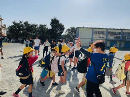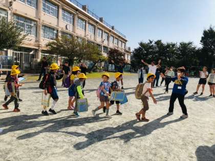 今日は2年生の遠足です。天気に恵まれズーラシアに行ってきます!ランランランが終わった5、6年生に見送ってもらいしゅっぱつです。