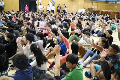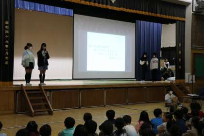 金曜日の朝は集会の日です。今日は美化委員会の集会です。