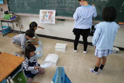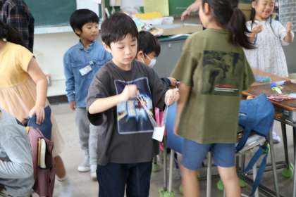 だんだん出来上がってきました。色や絵をつけて自分だけの遊び道具に仕上げていました。できた子から早速きちんと動くかどうか確認していました。