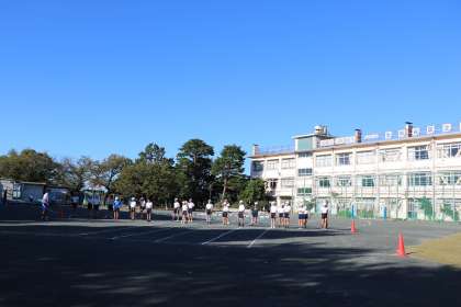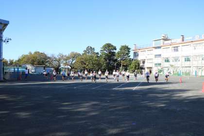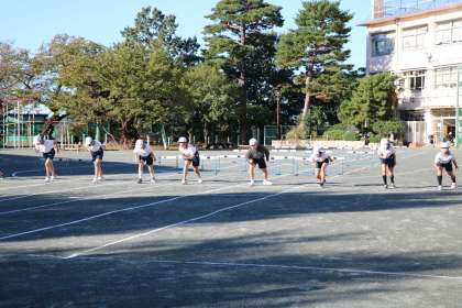 今日はハードル選手とリレー兼幅跳び選手の2名が朝練を頑張っています。
