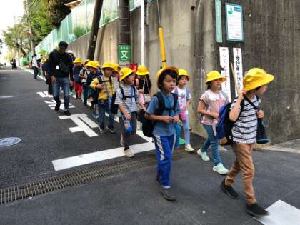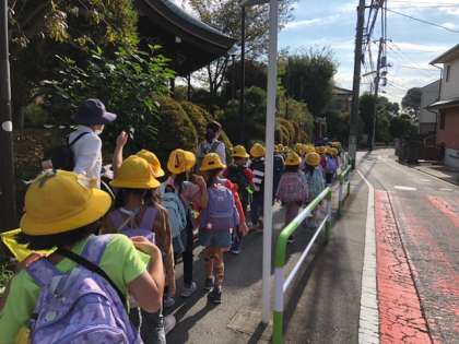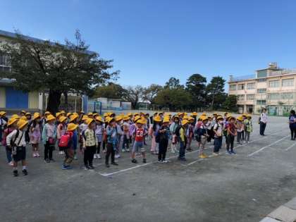 今日は1年生の遠足です。砧公園に元気で出発します!