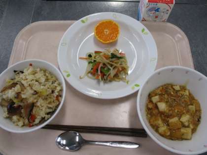 秋といえば、「食欲の秋」ですね。農作物が実りをむかえるこの時期は旬の食べ物がたくさんあります。「秋の香りごはん」には秋が旬のしめじ、さつまいもが入っています。