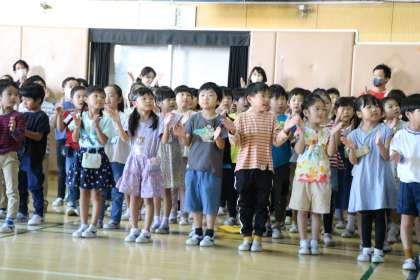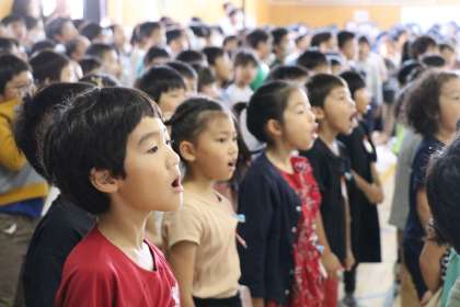 全校の歌声は学芸会保護者鑑賞日にはお聞かせできませんので、今日の朝会の様子をBANDを通してお伝えできればと思います。お楽しみに!