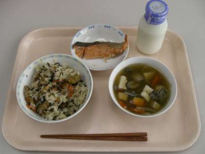 ひじきごはん  魚の照り焼き けんちん汁  牛乳