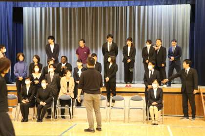 そして体育館では卒業アルバム用の職員写真を撮影しました。6年生の卒業を感じ、寂しくなる秋の恒例です。