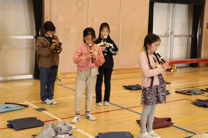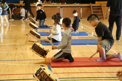 木曜日は石井戸囃子保存会の方に来ていただきお囃子の練習の日です。