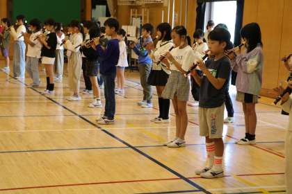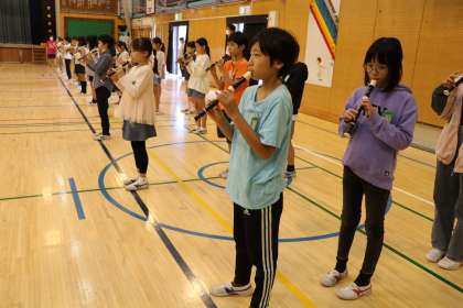 2時間目は4年生です。3年生もとっても上手になってきました。4年生は上手なのはもちろんですが音に迫力があります。保存会の皆さんも、4年生の演奏や踊りをとてもほめてくださいました。