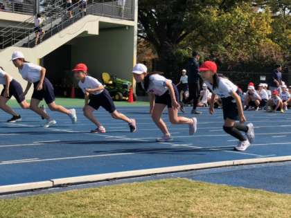 100メートル走の順番を待っています。