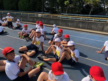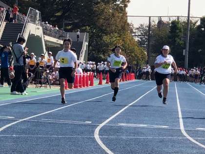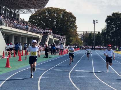 ハードル走にスタンバイする男子砧っ子たちと、100メートル走の様子です。