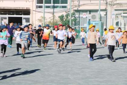 朝のランランランは1・2・3年生です。朝から軽く運動をすると前頭葉が活発になり学習も集中して取り組めます。寒暖の差が激しく体調を崩しやすいこの時期ですので、着るものを調節したり、元気に体を動かしたり自分の健康に気を配る子供たちになってほしいです。
